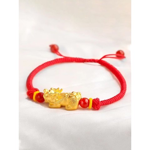 足金黄金貔貅手绳纳财招财进宝旺财运辟邪保平安之愿【纳财四方貔貅红绳+黑绳】 ZL035
